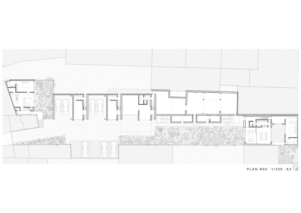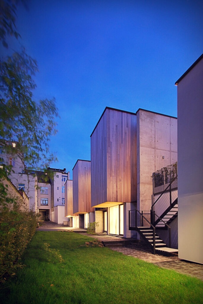 Le projet requalifie un long intérieur d’îlot à l’arrière de la chaussée d’Alsemberg, anciennement occupé par les entrepôts de la boulangerie Van Eeckhoudt et des garages laissés à l’abandon. Sur plus de 80 mètres de profondeur, les volumes existants sont transformés et complétés pour accueillir sept logements unifamiliaux, un atelier, des espaces de professions libérales et un jardin commun.