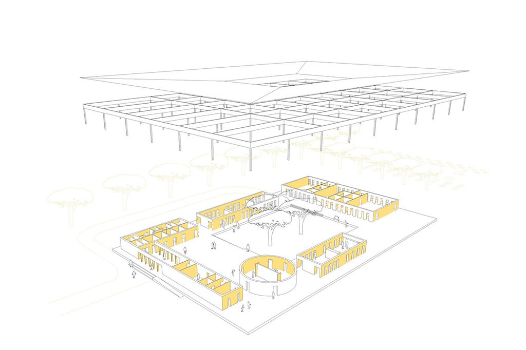 Construction de trois centres de formation professionnelle en Casamance. Chaque centre est conçu pour être confortable, modulable et économique en entretien. Utilisant principalement des matériaux locaux et des techniques de construction simples, les bâtiments favorisent l’autonomie et le développement durable des communautés locales.